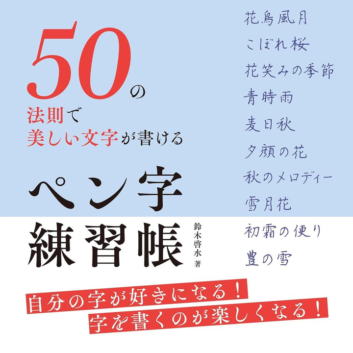 鈴木啓水さんの著書『50の法則で美しい文字が書ける ペン字練習帳』(高橋書店)にて、編集、著者への取材・執筆協力を担当しました。