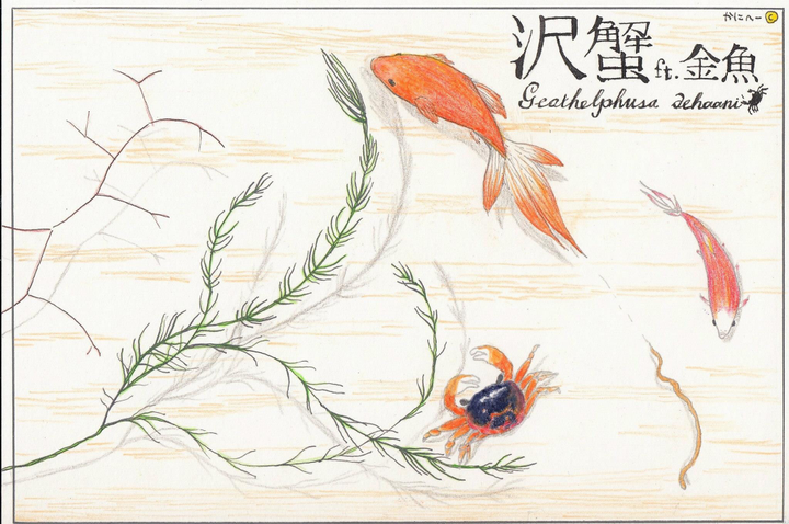 アートアクアリウムを見て。 丸ペン、色鉛筆にて描画 手紙サイズ