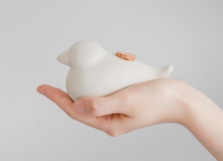 小鳥を手に乗せてホッと一息つくような時間が欲しくて、レンジで加熱する陶器のハンドウォーマーを作りました。中に小豆を入れることで、少しの加熱時間で温かさが持続します。生活に「何もしない時間」を作る、ぼーっとする為の道具です。 Design : Kazuki Ueda Client : M.M.Yoshihashi Material : Ceramics / Cork