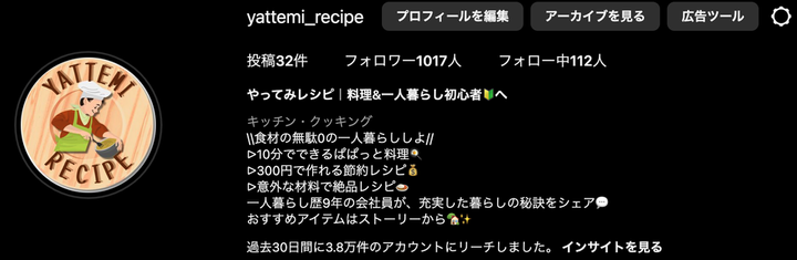 0からアカウントを構築し、投稿開始から1ヶ月でフォロワー1000人、リーチ数3.8万を達成。