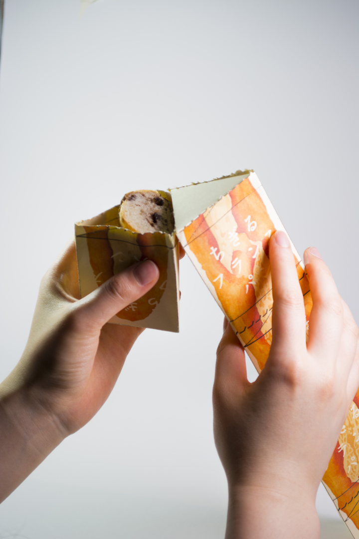 皆さんはフランスパンを買うときや、食べる時に「こんな大きいと、いっぺんに食べられないよ…」と思ってしまうことがあると思います。 そこで、この「ちぎるフランスパン」は事前に切られたフランスパンが、構造体の中に入っているます。そして、食べたい分だけ紙のパッケージをちぎることで食べる量を調節することができます。