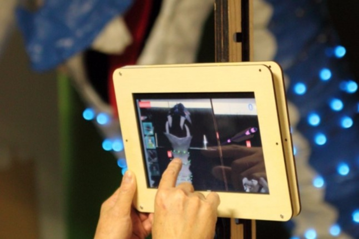 高専祭メイン部署は、機会電気工学科, 情報電子工学科, 土木建築工学科の3つの学科がそれぞれの技術を生かし、1つの作品を創り上げる企画を行っています. 今年は「大蛇の乱」を企画. 2mほどの5体のロボットを、5人のプレイヤーが協力してタブレット端末を用いて倒すゲームです. 機械科の学生がロボットの制御やLEDによる装飾を担当. 建築科の学生が本物の竹を用いた内装・デザインを担当. 情報科の学生がタブレット用のアプリケーションや全体統括のサーバの開発を担当しました. 自身は、タブレット用のアプリケーション開発及び3Dモデリングを担当. ゲーム画面内にロボットのステータスをAR表示したり、サーバと通信する処理を開発しました。また、ゲーム内すべてのUI、2つの武器と6つのアイテムのプログラム+3Dモデルも実装しました。