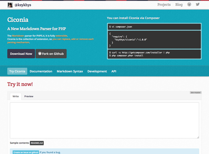 Michelfさんのパーサーをつかっていましたが、カスタマイズがしずらかったので、新しく自分で作りました。最初は評判がよかったですが、その後Parsedownがでてきてそちらがデファクトになりました。全ての機能をExtensionとして実装する、というアイディアはSymfonyの影響を受けています。