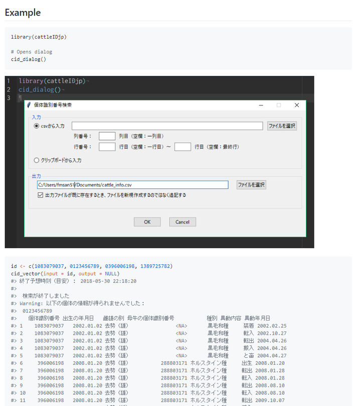Rパッケージ 家畜改良センターの牛の個体識別情報検索サービスのAPI 個体識別番号の一覧を用意すると、自動でその個体の情報を調べてcsvに保存する