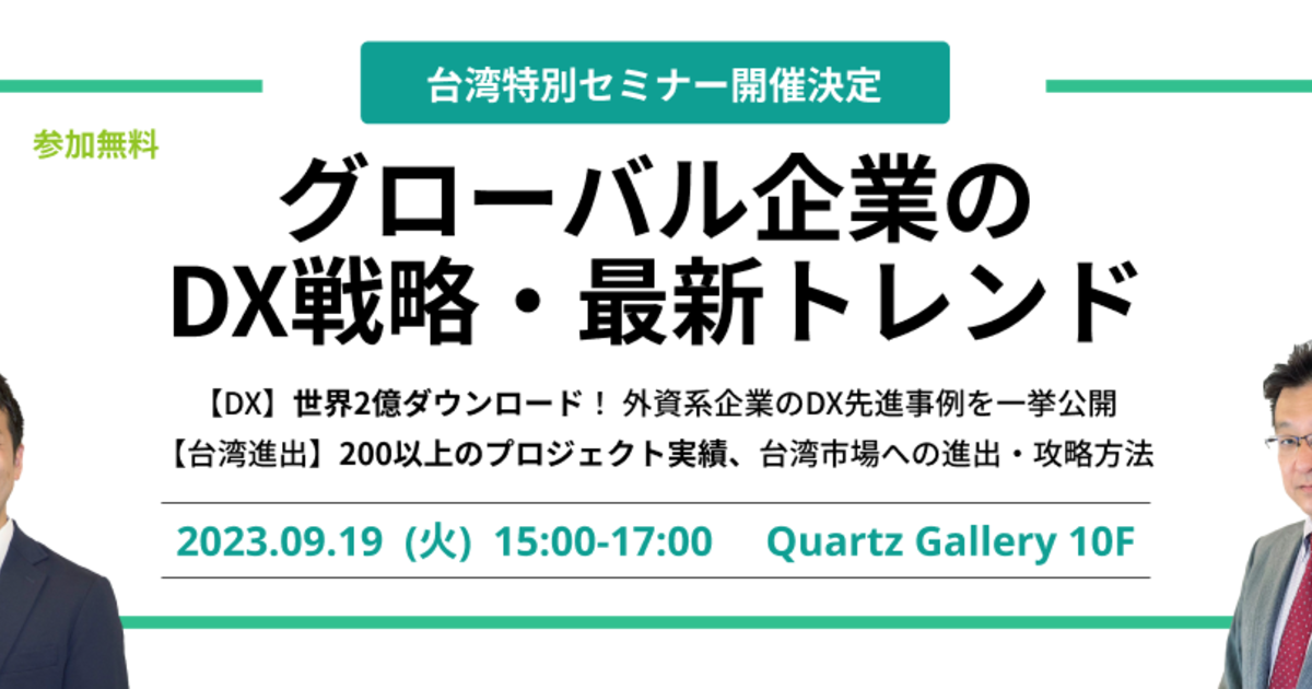 【台湾特別セミナー開催決定】世界2億ダウンロード達成、グローバル企業のDX戦略・最新トレンド/200以上のプロジェクト実績、台湾市場への進出・攻略方法