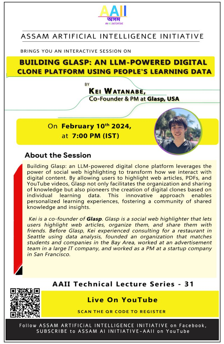 Kei is a co-founder of Glasp. Glasp is a social web highlighter that lets users highlight web articles, organize them, and share them with friends. Before Glasp, Kei experienced consulting for a restaurant in Seattle using data analysis, founded an organization that matches students and companies in the Bay Area, worked at an advertisement team in a large IT company, and worked as a PM at a startup company in San Francisco.