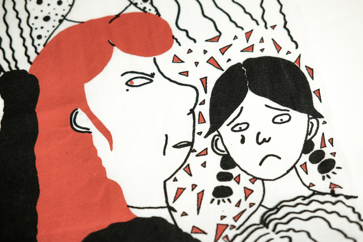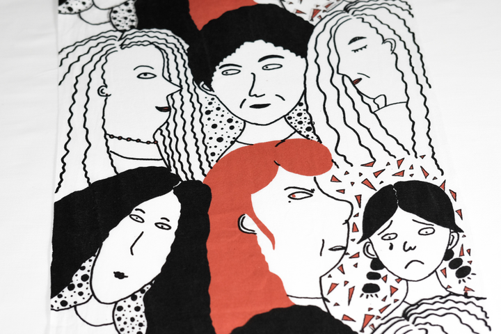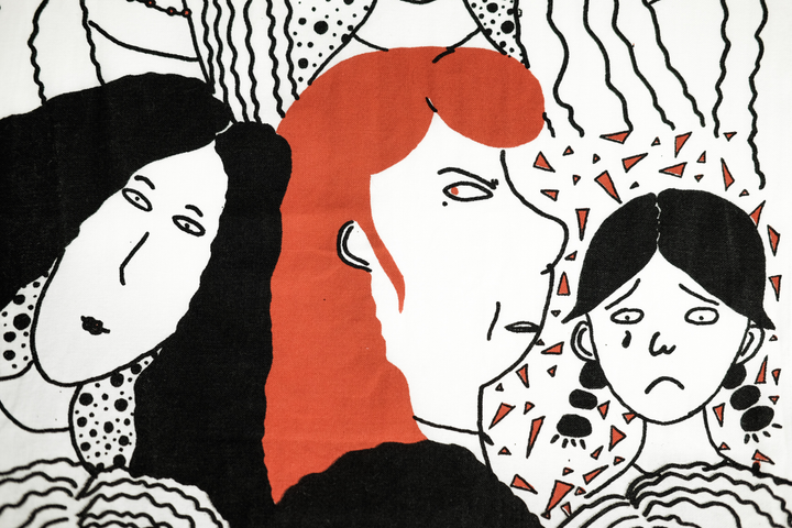 プリントデザインの授業で作った、連続模様の作品です。 よく聞かれるのは、「泣いてる女の子はババアではないのに、なんで入ってるの?」 「。。。いずれババアになるよw」