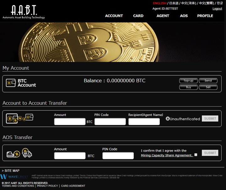 This site is AABT(Automatic Asset Building Technology, based on Japan). Hers are the main functionalities: - Bitcoin Send with Blockchain.info - Bitcoin Receive with Blockchain.info - Bitcoin Buy with ShapeShift.io - Bitcoin Sell with ShapeShift.io - Create Prepaid Card with WaveCrest - Card load bitcoin to Prepaid Card with WaveCrest. Their marketing plan shows below url: https://registration.abeamclub.com/entry_regist.aspx