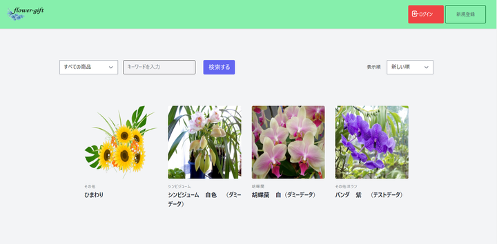 こちらのサービスは処分されそうな花を減らすために開発したflower-giftというサービスです。 このサービスはフルスタックで行い、企画から要件定義、開発、テストまで、私個人で行いました。 このサービスで工夫した点は2つあります。一つ目は開発だけで終わらず、運用も視野に入れている点です。 このサービスはユーザー同士の取引を想定しているので、ユーザー同士のトラブルが起こると予想しています。そのために、不適切な商品やコメントを運営に報告する機能を実装しました。また、それらの違反をどの管理人が処理したか判るように、専用のテーブルを作成しました。 もう一つは、外部サービスとの連携です。 例えば、取引場所をわかりやすくするために、googleマップのAPIを使用したり、商品画像をAWSのサービスの一つであるS3へ保存する機能を実装しました。今後は新規登録の手間を減らして、利便性を作るため、ツイッターアカウントなどからログインできるように実装していく予定です。 実際にユーザーに使ってもらい、アイデアから必要な技術を考察し、実装できるのは素晴らしいという声もある一方で、取引後のトラブルに対処するため、取引履歴の作成などを作成する方がいいという意見をいただいたので、さらに改良していく予定です。