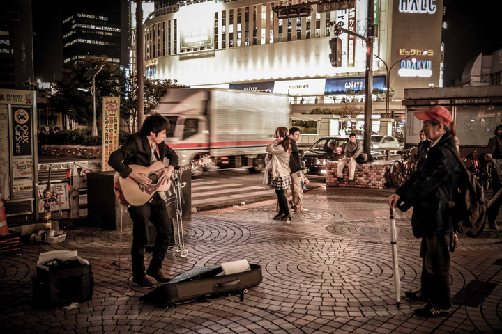 東京の新宿にて撮った写真です、未来へ羽ばたこうとしている若者を見ている老人、そこにストーリー性を感じ撮影いたしました。