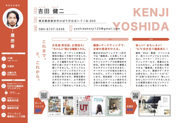 制作会社で、紙媒体を中心とした編集業務を約5年。そこから、フリーランスとしてWebメディアを中心に約2年。Webメディアでは、企業のオウンドメディアのHP制作やコンテンツ制作を中心に。紙メディアでは、旅雑誌やカルチャー誌、広報誌、カタログなどを制作。取引先は、出版社、広告代理店、アパレルブランドやライフスタイルメーカー、不動産会社、大学など。