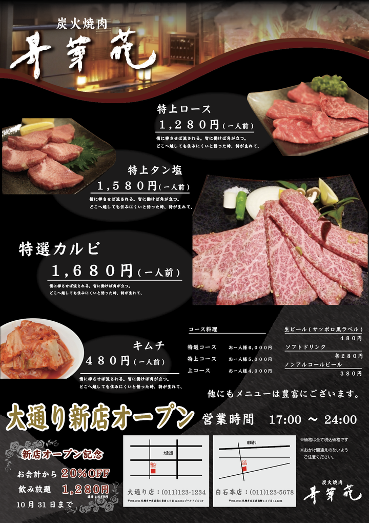 焼肉屋さんチラシサンプル