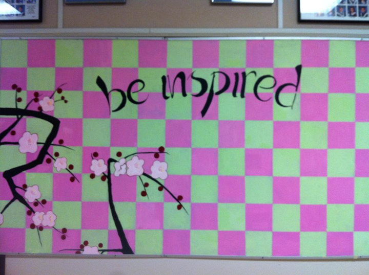 留学生を代表して、掲示板の作成を依頼された。ここでは日本を代表する桜などを入れていった。