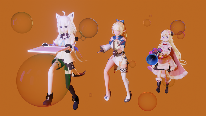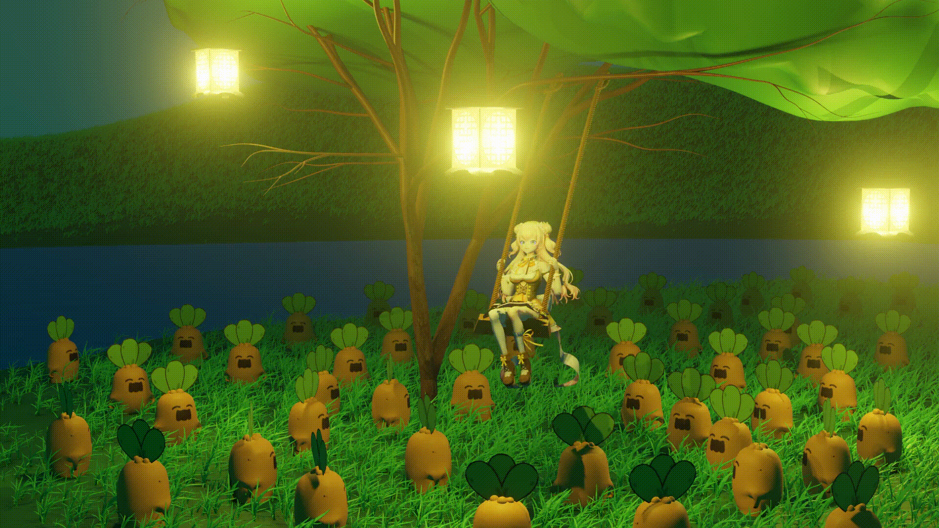 最初の3D Liveは2021年のホロライブ桃鈴ねねの3Dお披露目で、ステージやキャラクターなどの演出は印象深かったです。あの時から、UnityとBlenderを独学し、いろんな3D知識を学んできました。皆に楽しいゲームとライブを作りたいです。