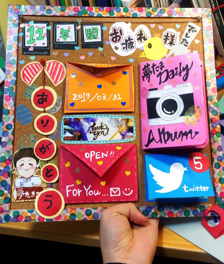 バイト先のケーキ屋さんが閉店するとのことだったので、スタッフの皆さんに手紙を書いてもらったり写真を撮らせてもらいながら、シェフにはサプライズで感謝のボードを作りました。