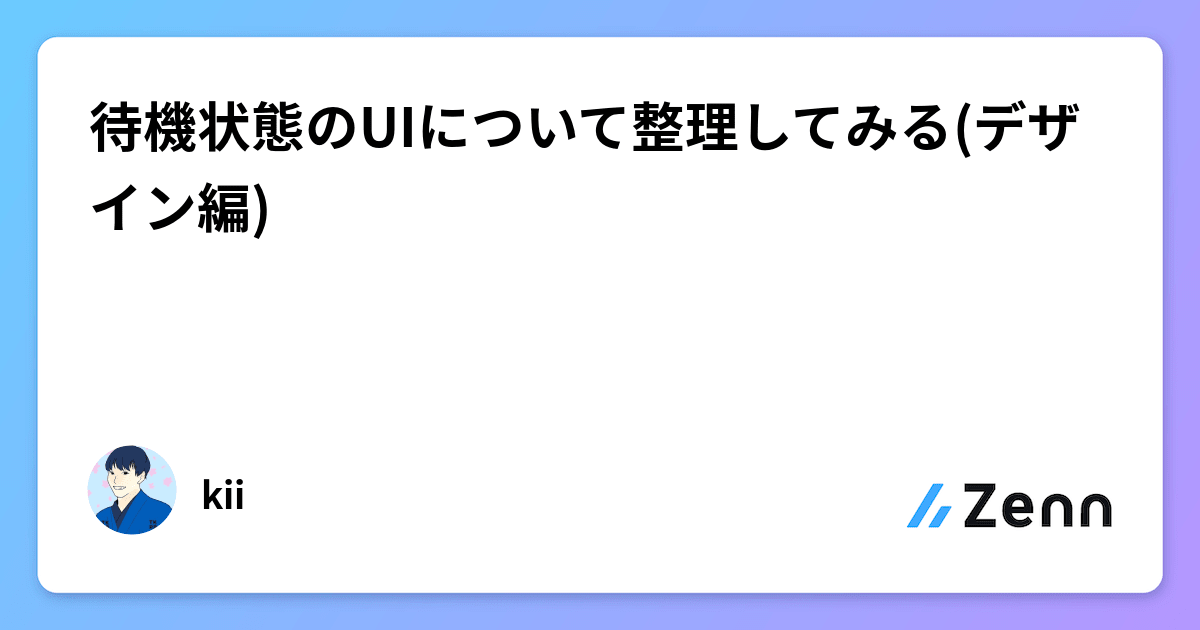 待機状態のUIのような動的なUIの実装って、 Front-end 側で UI デザインリサーチ、提案することが多いけど、 リサーチに割く時間がないことも多いため、 雑めになりがちです。 なので、まとめてみました! 書いた背景: 自身の今後のWeb Front-end Engineerとしての成長を考えた際に、 Web Front-endって、BizやDesign、BackendとWeb Front-endについてエンジニア視点で意見を言える必要があって、時間ある時にResearch,実装しときたいと思った。 その際に、Researchと実装に取り組むついでに記事として公開することにした。 自身のScrapboxに待機状態のUI系の記事がアクセスが多く、動的なUIはエンジニア側で提案することが多い実経験から共感されると考えた。 結果: 想定通り、Zennランキングトップに居座って、多くの人に見てもらえた。