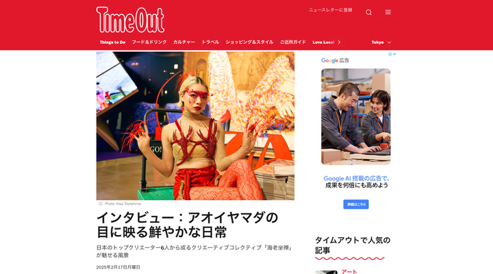 TimeOut東京で、ダンサーや俳優として活躍するアオイヤマダさんにインタビューしました。 アオイヤマダさんら6人のトップクリエイターが属するクリエイティブコレクティブ「海老坐禅」。「海老坐禅」初の作品集となる『EBIZAZEN』の発売を記念して、2月7日から2月24日までPARCO MUSEUM TOKYOにて「海老坐禅展」が開催されました。今回は、「海老坐禅」のミューズとしてのアオイヤマダさんに、制作において大切にしていることを聞きました。