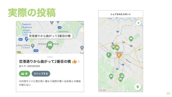 市民が危険だと感じた雪道のヒヤリハット地点を共有し、冬の事故を減らすことを目指すアプリを個人で開発・リリースをしました。また、アニーリングマシンという計算機を用いて除雪経路の最適化にも取り組みました。