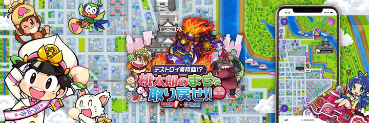 Nintendo Switchで発売中の大人気ゲーム「桃太郎電鉄 ~昭和 平成 令和も定番!~ 」のタイアップ企画にて行われる、市内探索型イベント「リアル桃鉄」内で使用されるマップのデザインを担当いたしました。