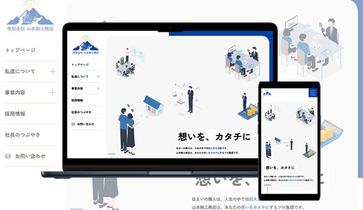 制作概要: 山本剛工務店の公式サイトをゼロから構築しました。 訪れた人が業務内容や現場の雰囲気を直感的に理解できるよう、各ページにイメージ写真を効果的に配置。トップページにはスライダーを導入し、ページ内移動にはスムーススクロール、ナビゲーションにはドロップダウンなど、JavaScriptを活用した動きのあるUIを実装しています。 また、「社長のつぶやき」と題したブログを運営できるようWordPressを導入。更新作業を社内で完結できるようにし、情報発信力の強化を図りました。 制作目的: ハローワークへ求人を掲載しているにもかかわらず、縁故以外の応募がほとんどない状況を改善するため、採用強化を主目的としてサイトをリニューアルしました。 会社の雰囲気や日々の仕事内容が求職者に伝わりやすいよう、写真やブログを通じて「働く姿が具体的に想像できる」構成とし、応募への心理的ハードルを下げる狙いがあります。 ターゲット: 建築業界経験のある20〜40歳代の男性、および施工管理者 / 内装大工を目指す若年層。 担当範囲: 静的コーディング/Wordpress構築/デザイン一部 使用スキル: HTML / CSS(Sass)/ JavaScript / PHP / WordPress / gulp 制作期間: 30日