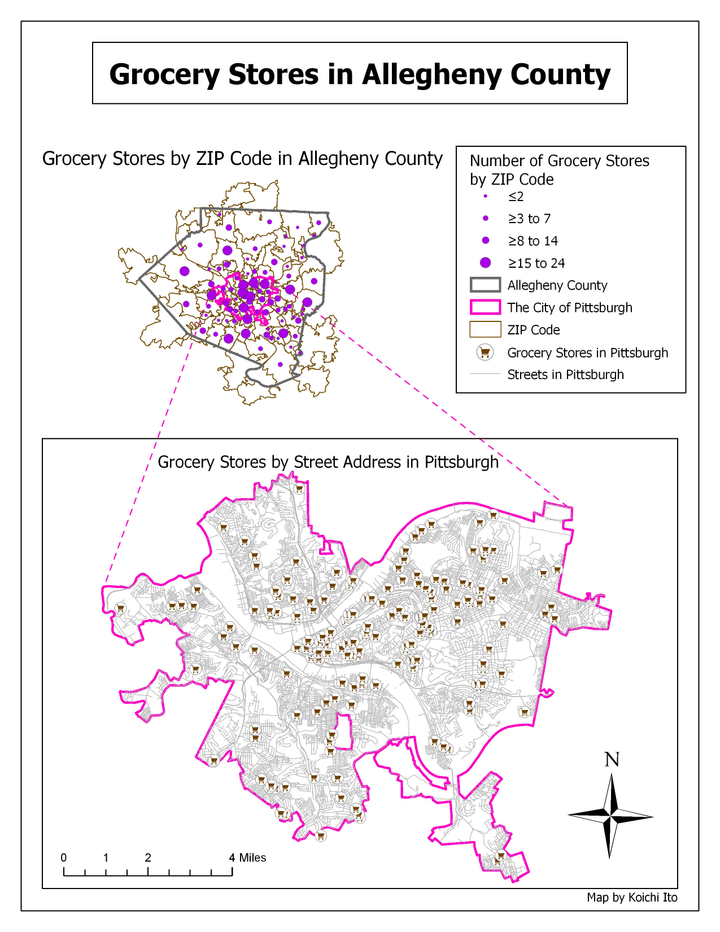 ピッツバーグにおける食料品店の分布マップ