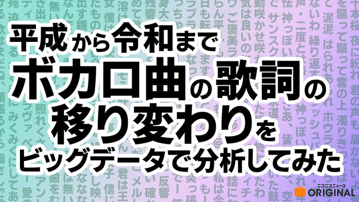 「ボカロ曲の歌詞は暗い」は本当なのか? 平成から令和の歌詞を分析して明らかになったボカロジャンルに一貫している特徴とは【話者:文化芸術計算機科学教授 山西良典】
