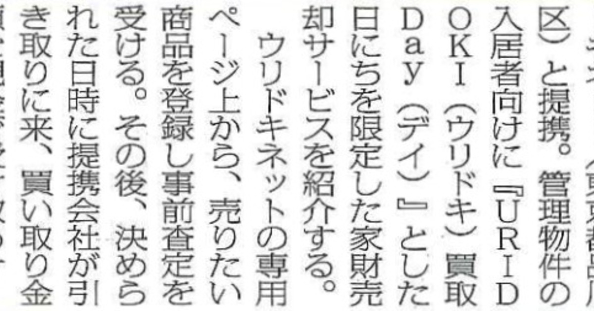 リサイクル通信にて、東急不動産HDのナジックとのサービス「URIDOKI買取Day」に関する記事が掲載されました!