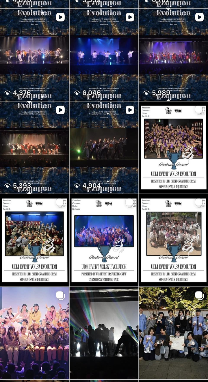 関東医療系大学ダンス連盟UDMにて年2回行われるイベント運営を3年間経験。自身がオーガナイザーとして代表を務めたUDMイベントvol.35、vol.36ではSNSアカウントを自ら新設し、クリエイティブ制作、アカウント運用、集客を一貫して担当。結果vol.36でコロナ明け初の1000人規模の動員を達成する。 vol.37では元々の会場のアクセスの悪さを課題視し、本番の1年以上前から交渉を行い、新宿FACEに会場を移転させ、引退。