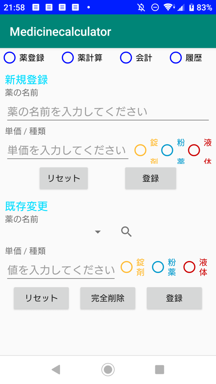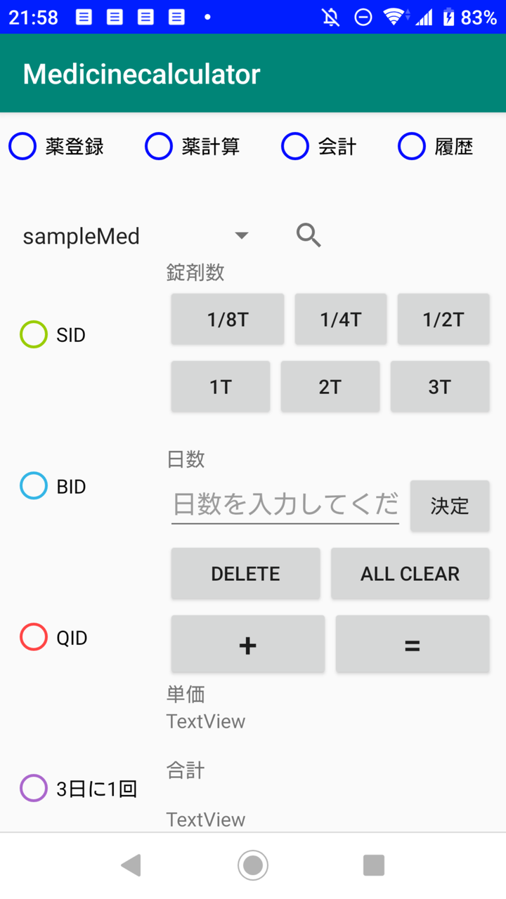 アルバイト先の動物病院で使用するために作成した薬のための電卓