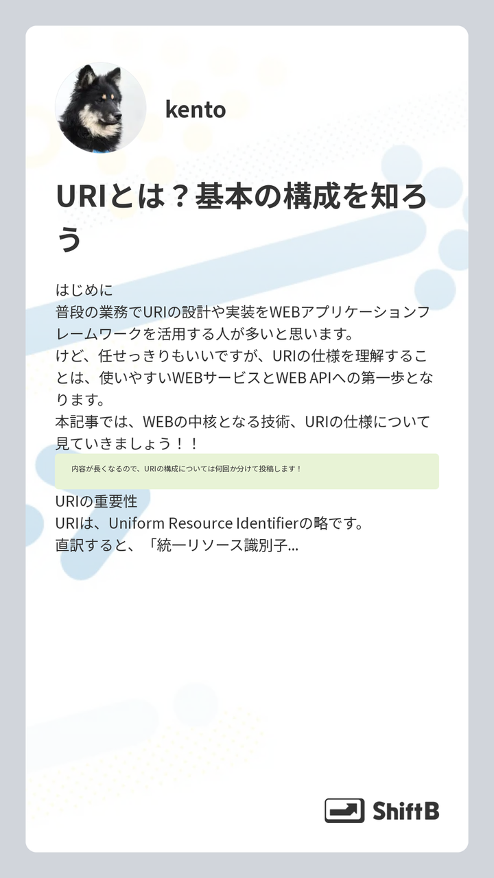 URI(統一リソース識別子)は、WEB上のリソースを一意に識別するためのIDであり、その仕様はRFC 3986で定義されています。 基本要素としてURIスキーム、ホスト名、パスがあり、これらを組み合わせることでリソースにアクセスできる仕組みが形成されています。 今後の記事では、さらに高度な構成要素であるユーザー情報やクエリパラメータ、フラグメントについても解説します。