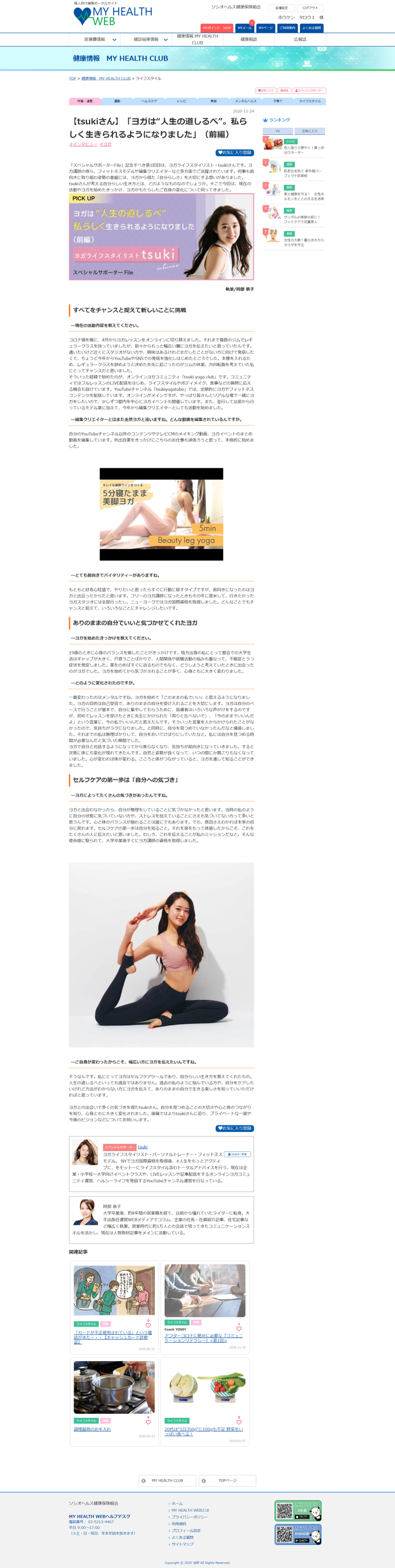 健康組合加入者の健康ポータルサイト内で掲載しているインタビュー記事。月間50万PV。