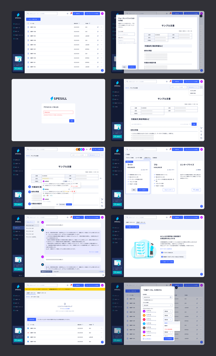 専門文書の作成を効率化する生成AIツール「SPESILL」の立ち上げメンバーとして、プロダクトのUI・VIデザインを担当しました。 プロダクトの成長とスムーズな運用を見据え、複数の業務委託デザイナーと協業できるよう、Figmaを活用した統一性のあるデザインシステムを構築。誰でも理解しやすく、スムーズにデザインの更新や拡張ができる仕組みを整えました。その後、リリース時点での全機能のUIを設計し、使いやすさと視認性の両立を意識したデザインを実現しました。 また、サービスのVI(ビジュアルアイデンティティ)の制作に加え、展示会で配布する資料やブースデザインも担当。サービスのブランドイメージを一貫して伝えられるよう、視覚的な統一感を持たせ、訴求力の高いデザインに仕上げました。