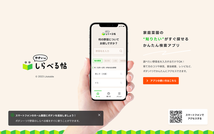 インターネット(特にスマホ)を使いたいけれど、苦手意識が強くうまく活用できないユーザー向けに、家庭菜園の「知りたい」が簡単に検索できるWebアプリを開発しました。(現在はサービスを終了) きっかけは、知り合いの60代男性からの声。「家庭菜園について調べたいけれど、何と入力すればいいかわからない」「怪しいサイトに引っかかりそうで不安」「タイピングが苦手で検索自体がストレス」という課題を抱えていました。 そこで、「タイピングを最小限にし、直感的に使える検索体験」をコンセプトに設計。ユーザーが入力するのは野菜名のみで、あとはタッチ操作で完結する仕様にしました。 1.野菜名を入力 2.「育て方」「病気」「害虫対策」などのカテゴリをタッチで選択 3.サジェスト機能に表示された有益な情報をタッチするだけで、必要な情報にアクセス また、意外にも高齢ユーザーがYouTubeを情報源として活用していることを踏まえ、最終的な検索結果は「Web検索」と「YouTube検索」の2つから選べる仕様に。これにより、文章よりも動画で学びたい層にも対応し、より多くのユーザーにとってストレスなく情報収集ができる環境を提供しました。