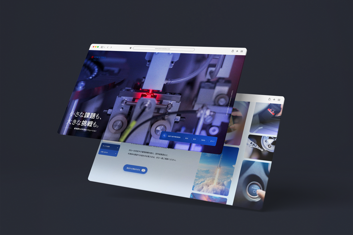 新規事業のサービス紹介サイトのアートディレクションとデザインを担当しました。製造業大手ならではの信頼感を大切にしつつ、最先端分野を切り拓く力強さや先進性が伝わるよう、「鋭さ」を意識したデザインを設計しました。ターゲットとなるユーザー層や業界特性を踏まえ、視覚的な印象だけでなく、使いやすさや体験価値の向上にもこだわり、ブランドのメッセージを効果的に伝えられるよう工夫しています。