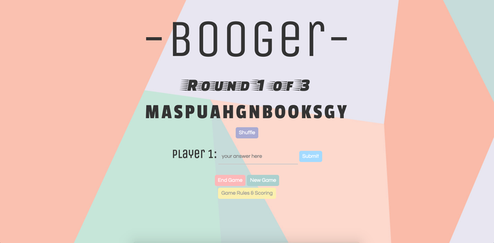 A game like Boggle but there's a catch - you cannot see what word the other player has submitted and once a word has been played, you won't be able to get any points for it.