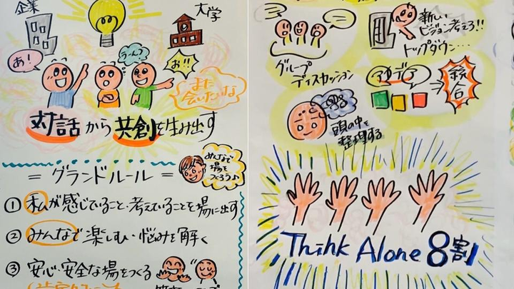 言葉だけでは伝えきれないこと、頭では理解しているものの気づいていなかったこと、気づいているけれど言えなかったこと。 そんな葛藤やモヤモヤを、絵や線として表現していきながら、今ここと、未来について考えていきます。 個人向け、チーム向け、両方やっております!