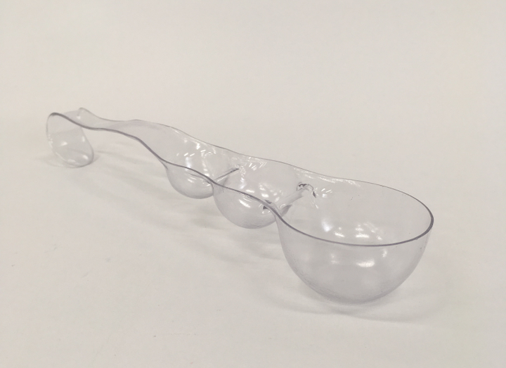 調理用軽量スプーン 写真手前のくぼみから大さじ、小さじ、小さじ2分の1と軽量できる 持ち手と大さじの底面ご平行なため自立できる 素材:塩化ビニール