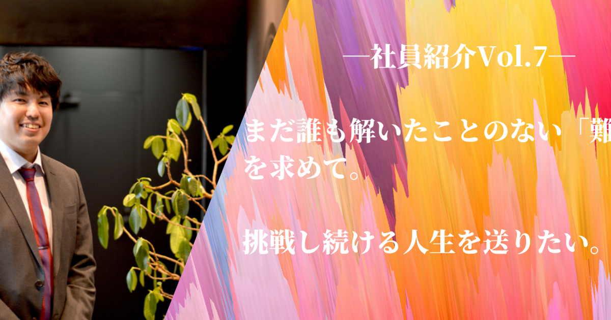 【社員紹介vol.7】まだ誰も解いたことのない「難題」を求めて。挑戦し続ける人生を送りたい。