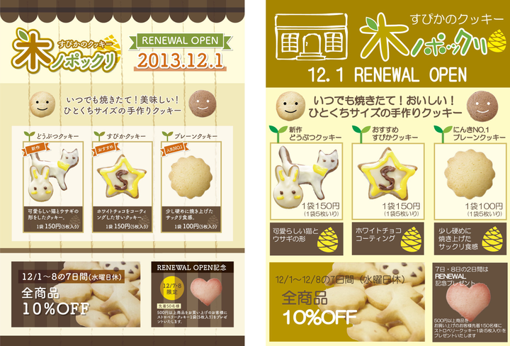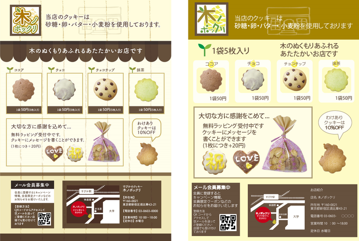 6年前のデザインをリメイク ◀︎2019年 2013年▶︎ 2013年(高校2年生)の時にデザインしたチラシを2019年にリメイクしました。 架空の商店街とお店を考えて制作しました。