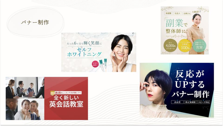 「急ぎの案件が立て込んでいるのに、デザインを任せられる人がいない…」 そんな状況で頼れる外部パートナーでありたいと思っています。 8年間の教員経験で培った柔軟性と対応力、そしてフットワークの軽さを活かし、必要な時にすぐ動けるのが私の強みです。 バナーであれば**最短2日、LPであれば最短7日〜制作可能**ですので、急ぎのご依頼にも対応いたします。