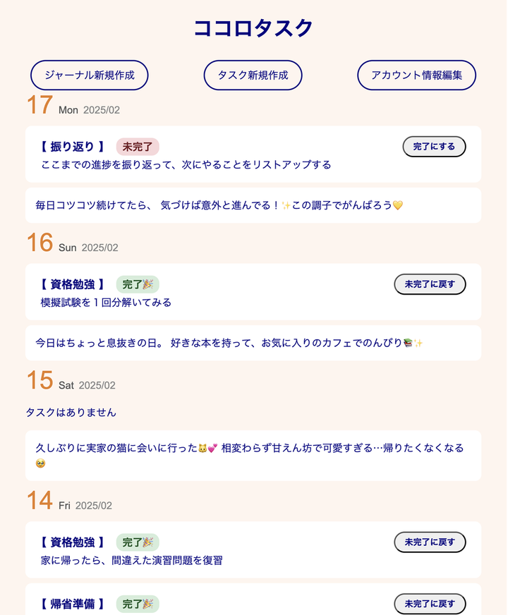 ココロタスクの作成