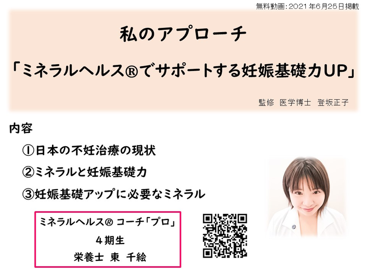 妊娠時系列を健やかに過ごすための動画情報サイト監修、臨床研究(抗加齢学会・未病学会・生殖医学会に発表)妊娠時系列🄬に特化した商品の開発