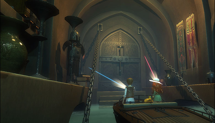 謎解き脱出ゲーム「サラと毒蛇の王冠」は、グリー初の取り組みとしてTGS2015向けに開発したOculus Rift対応のバーチャルリアリティゲームです。 特徴は、バーチャル空間内でのコミュニケーションです。二人一組で協力して、王家の神殿の謎を解きながら財宝を目指して進んでいただきます。