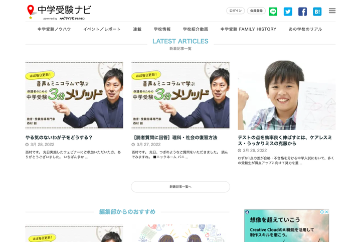 【デザイン・フロント構築】中学受験ナビ:サイト運用・改善