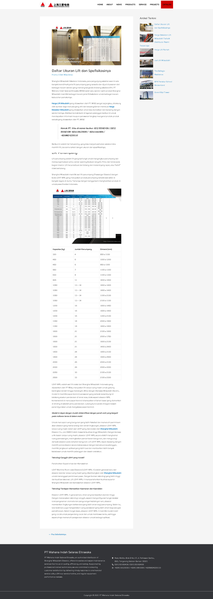 Daftar Ukuran Lift dan Spesifikasinya