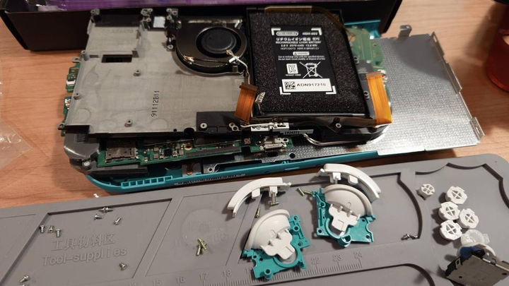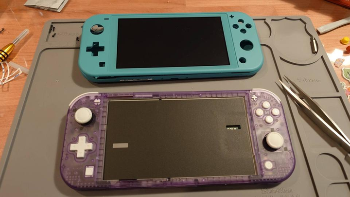 ・・・といっても、市販のスケルトンケースを購入してSwitchLiteを全分解し、パーツを再配置して組み立て直しました。 液晶がついてないのはこの後に有機ELパネルに差し替える為です。(未到着)