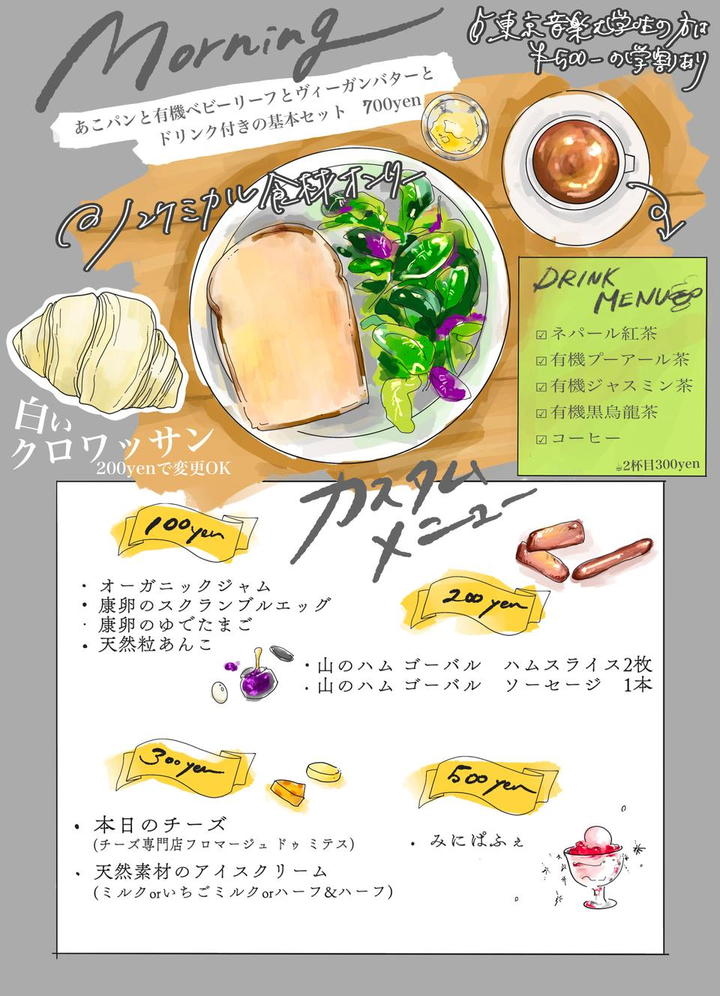 自炊を広げる活動の中、安心して食べられる調味料や食材を使用したおむすび・お弁当の販売、自炊講師のサポート、イベントの企画・運営、カフェの店長業務など。 自立した稼げる女性の応援・支援も並行に行う。
