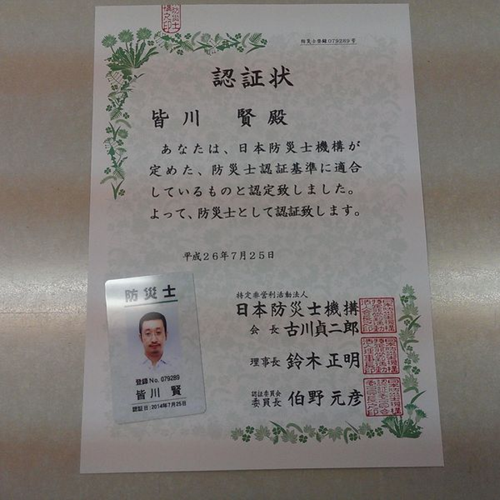 東日本大震災を経験し、元々地震を研究していて防災にも人一倍関心が深かったため、防災士の資格を取得することを決意。救急救命講習受講後、東京で講習会受講後の試験で合格。