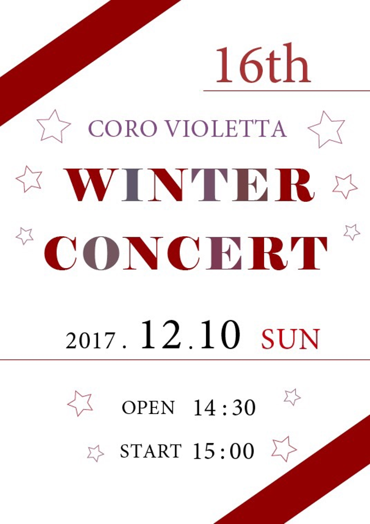鈴木美緒ウィンターコンサートポスター使用ソフト:Illustrator 部活動のウィンターコンサートのポスターです。 開催日が一番分かりやすくなるように、シンプルなデザインに仕上げました。 コンサートのドレスコードの色がワインレッドだったため、ポスターもドレスコードと合わせて配色しました。