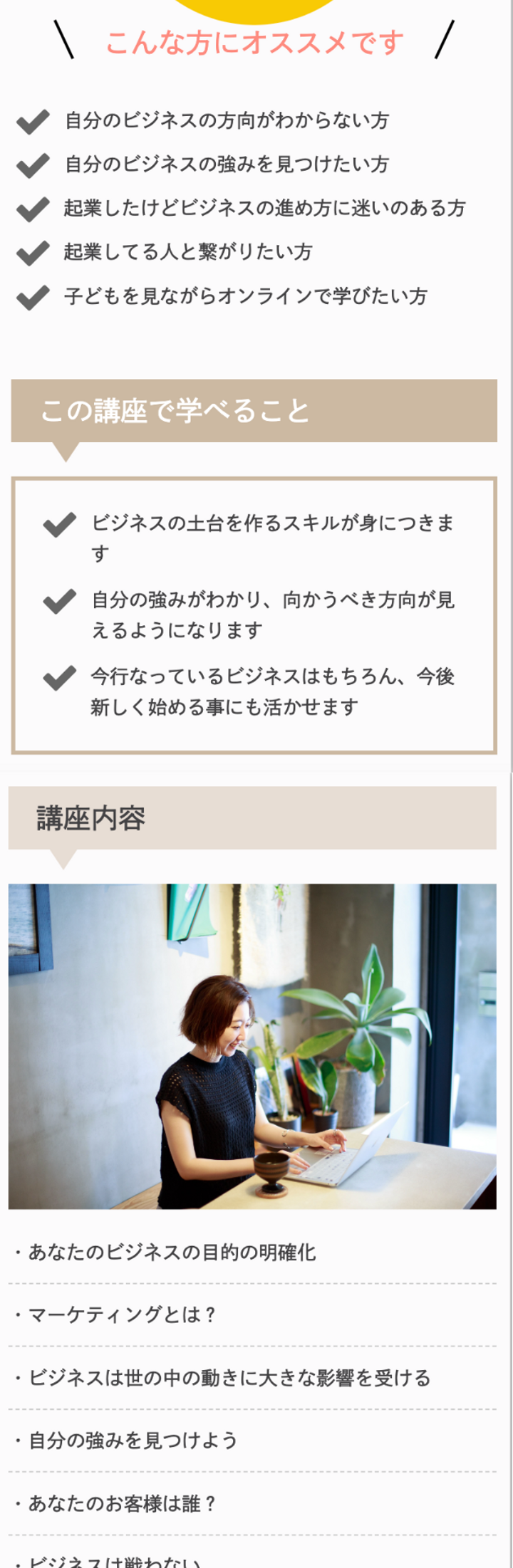 2021年にマンツーマンで行っていた、私自身のマーケティング講座のLP。 マーケティングの”マ”から学べる内容の講座で、難しく捉えがちなマーケティングを楽しく身近に感じていただけるよう、LPにも柔らかさなど、堅くなりすぎないデザインで制作しました。